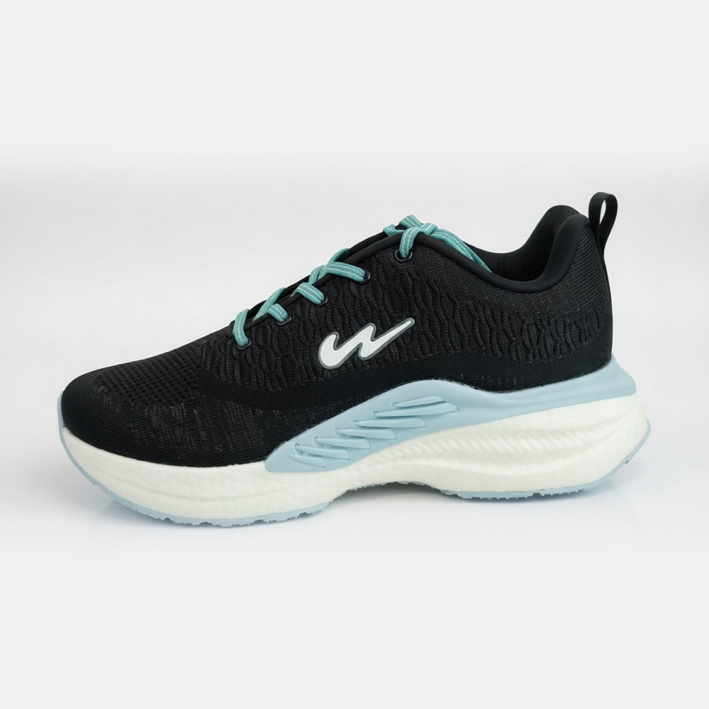 Upgrade your everyday performance with these stylish Campus running shoes, crafted for comfort and contemporary appeal. Featuring a breathable black knitted upper with a textured pattern, they ensure optimal airflow while delivering a secure, adaptive fit. The striking teal laces add a vibrant contrast, giving the shoe a fresh and energetic look.