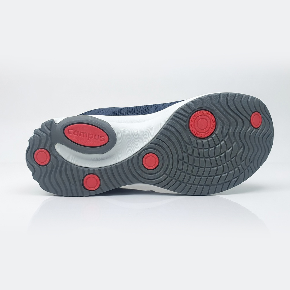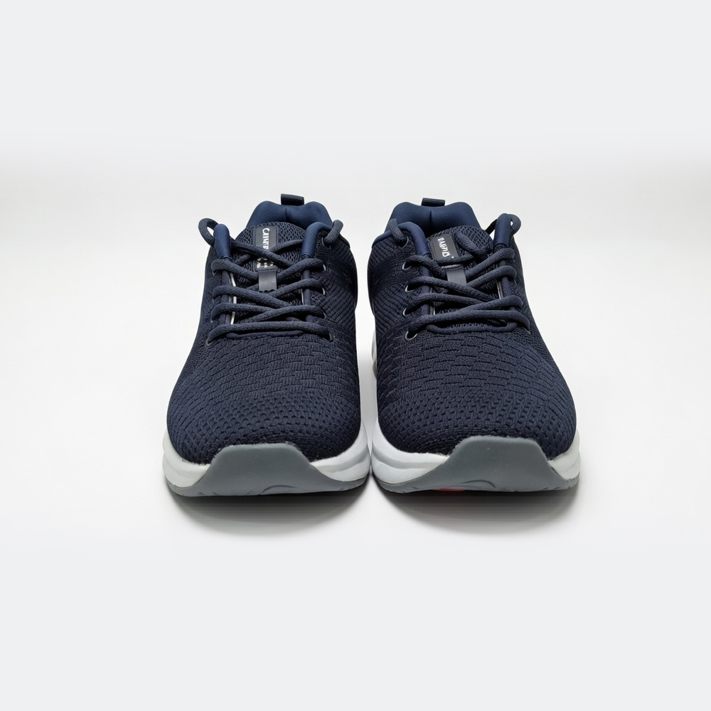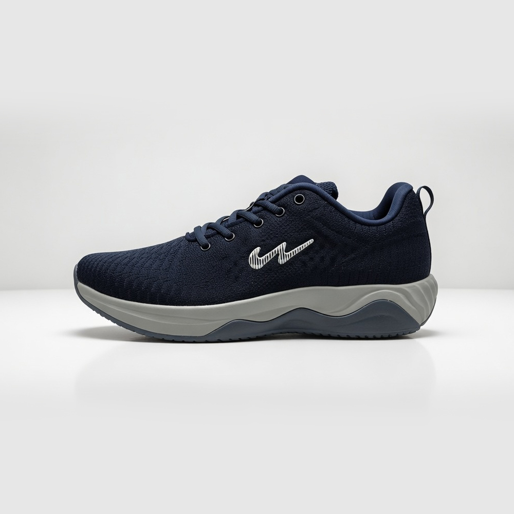 Campus navy blue running shoes are designed to deliver comfort, stability, and modern athletic style. The breathable knitted upper features a textured pattern that enhances airflow while providing a snug, adaptive fit. The deep navy tone adds a sleek, versatile appeal that pairs effortlessly with both activewear and casual outfits.